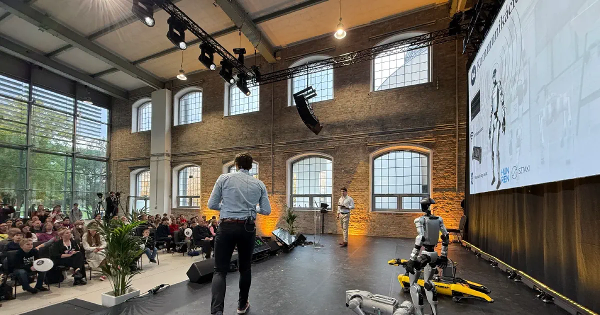 A humanoid robot kezet fogott, integetett, sőt még egy leesett pénztárcát is átvett az egyik robotkutyától, a közönség nagy örömére. A rendezvényt a HUN-REN elnöke és vezérigazgatója is meglátogatták.